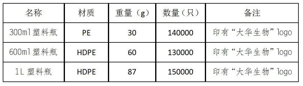 1.项目名称:淮安大华生物科技有限公司2025-2026年度包装物—塑料瓶集中采购项目;