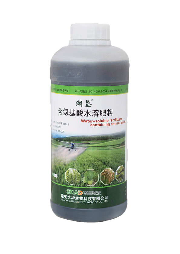 大华含氨基酸水溶肥料是以植物源为原料,采用生物技术螯合铁、锰、锌等多种微量元素精制而成,内含多种植物必须的氨基酸、微量元素及天然活性物质,是生产绿色、有机农产品的优质水溶肥料。